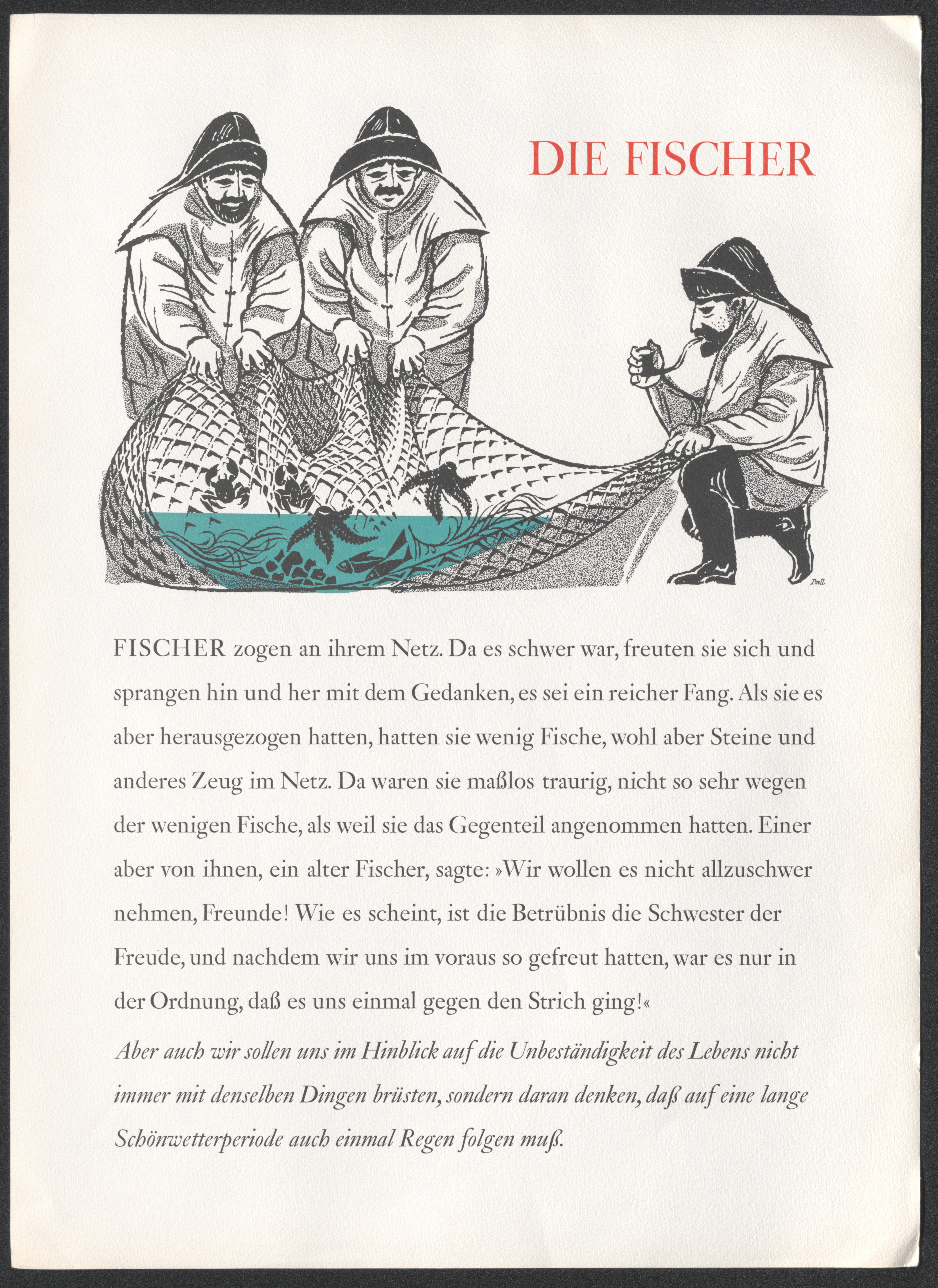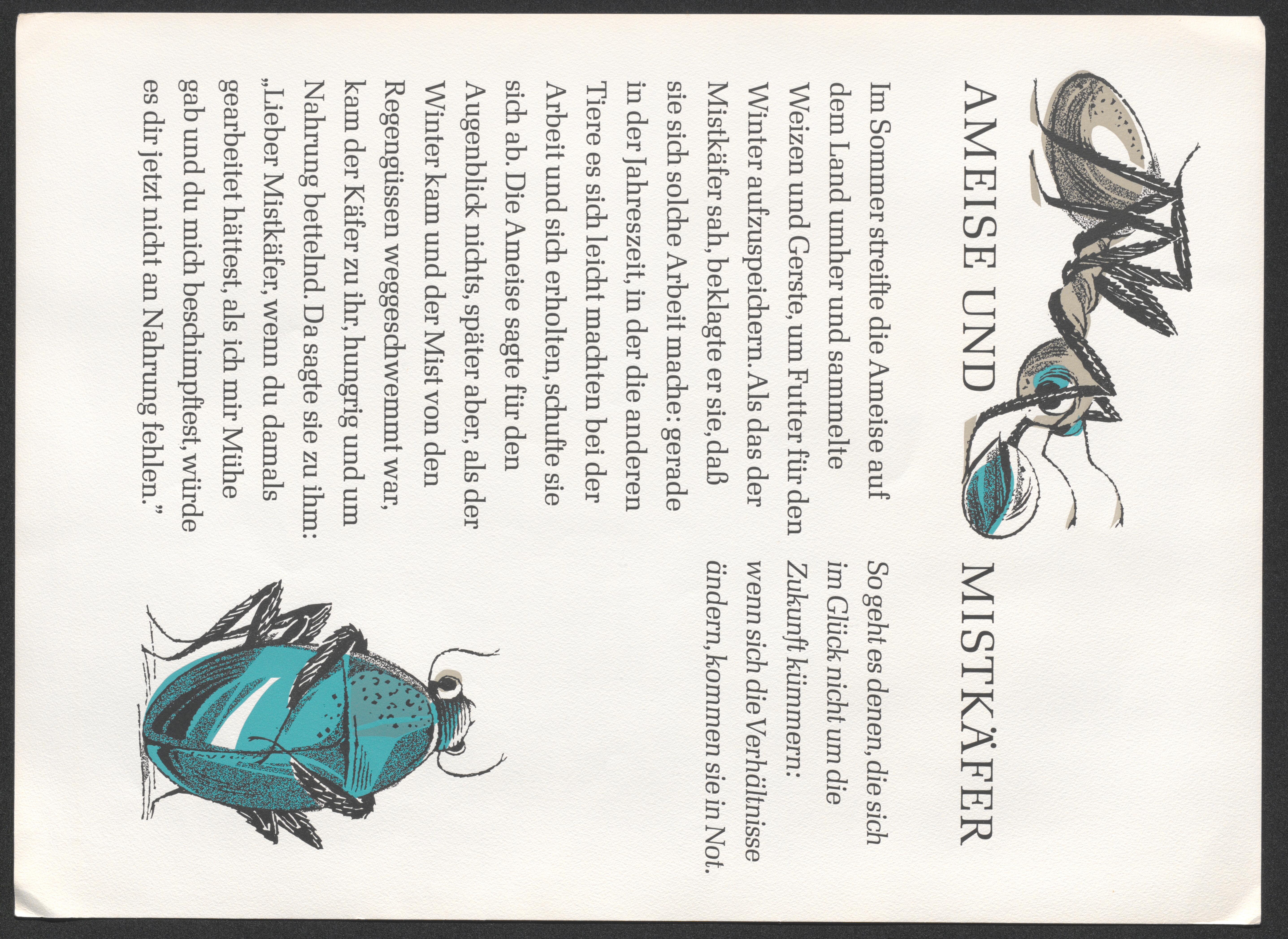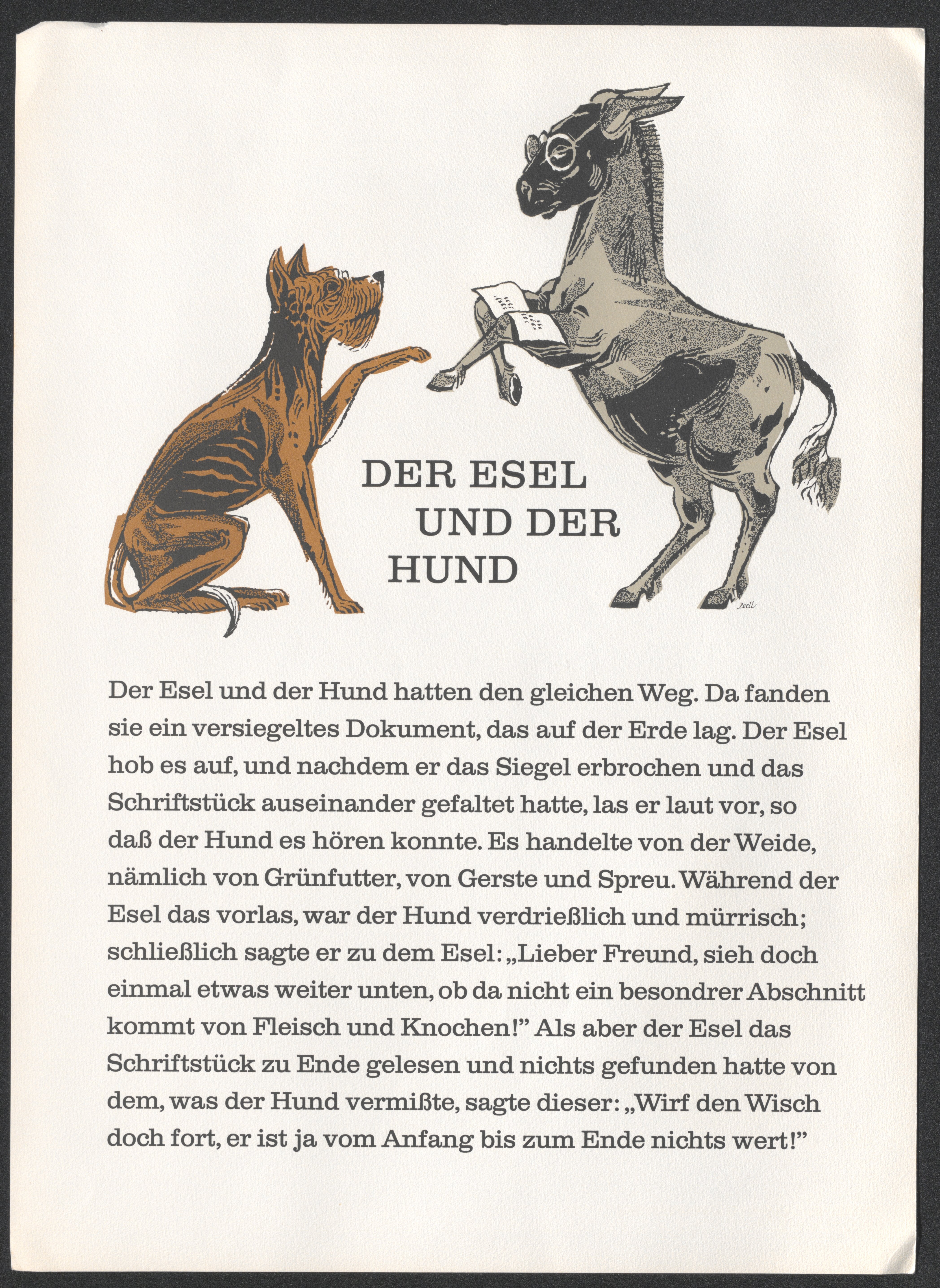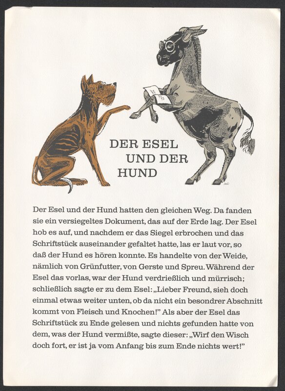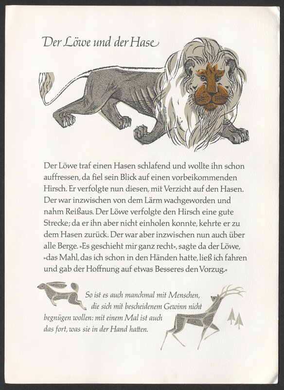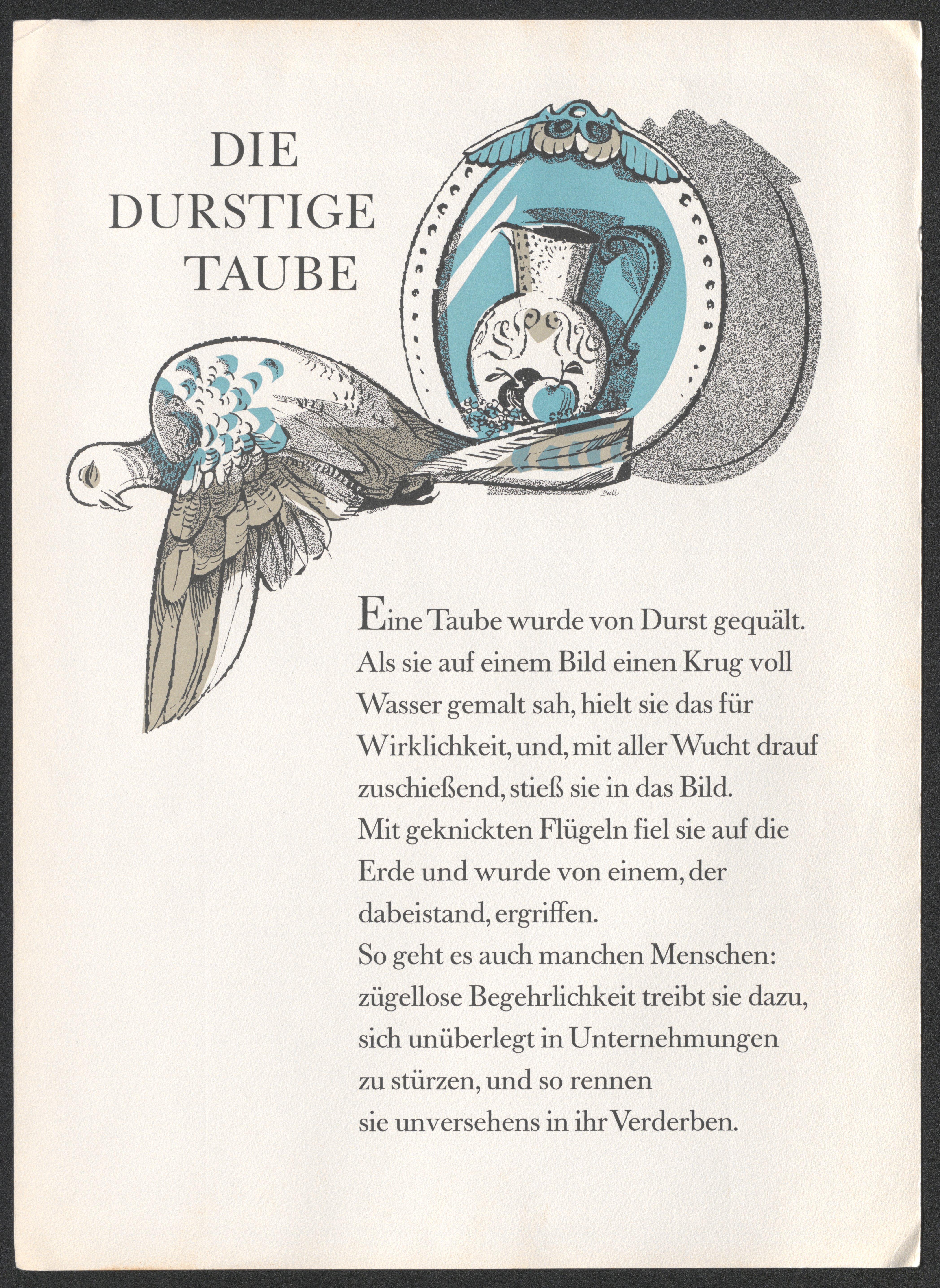 1963 Seven “Fabeln” by Erwin Poell, Mannheim. Texts from “Antike Fabeln” by Wolfgang Mader (1951). D. Stempel Verlag. Size. Cost? Source unknown.