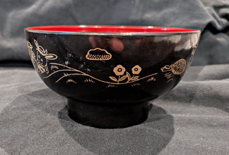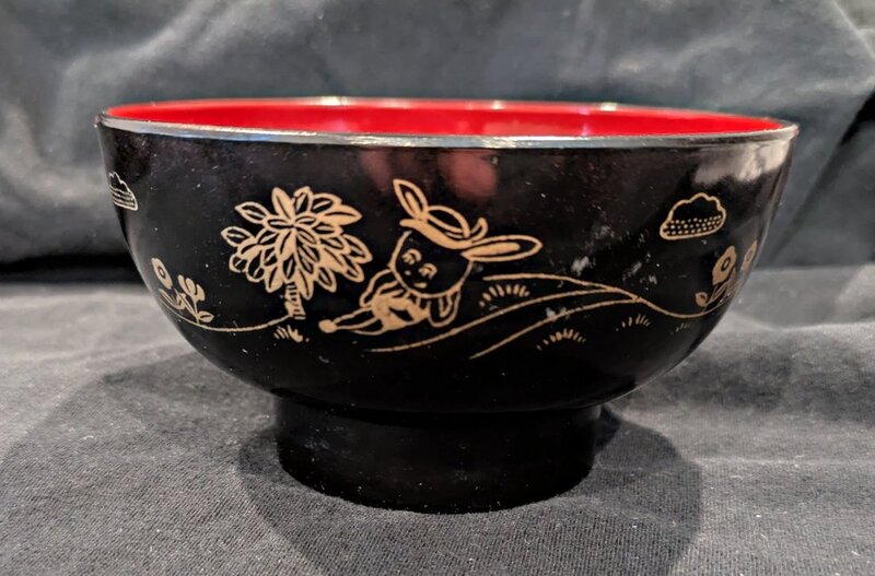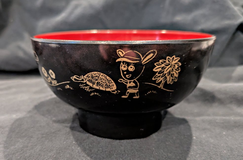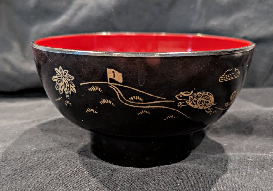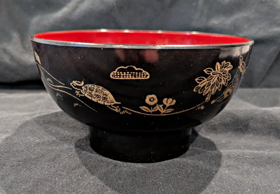 1980? Three Korean Bowls Picturing TH. 4.5" in diameter. Gift of Margaret Carlson Lytton.