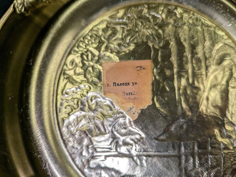 1970? Vintage Tin Plate with Handles. FG illustration at the center. " Sarajevo "? Brass? Maximum length 12". Russian? Unknown source.