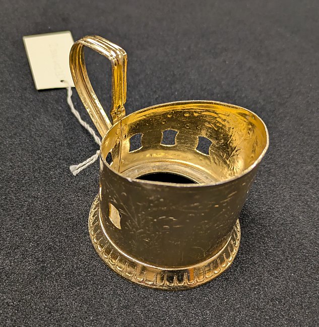 2000? Tea glass holder. Brass. 3/5" high, 3.25" in diameter. Unknown source.