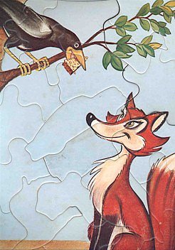 Many of the pieces of this puzzle are identifiable objects. In fact, if you look in the illustration, you can find an automobile. I find it curious that now that I have finally found three picture puzzles of fables, two of them were done by the same company in the same year! - Date