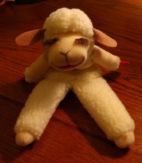 1993 Lamb Chop puppet. Part of a set including wrapping paper, a greeting card, Lamb Chop's Fables, Lamb Chop's "Sing-Along, Play-Along" cassette, and Lamb Chop's "Jump into the Story" videotape. ©1993 Shari Lewis Enterprises, Inc. The set cost $39.95 from Time/Life, Inc., Oct., '93. Extra with Lamb Chop's Fables: You Can Do It, Lamb Chop! (1994), $5.37 from Cheapybooks.com, April, '99.