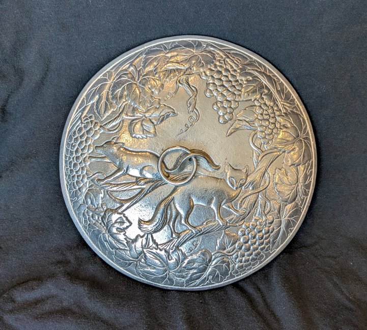 We have long had a lid, and I have wondered if it is from Arthur Court; I have even wondered “For what is this is a lid?” By luck today on Ebay, I found my answer. I was willing to settle future questions by buying a whole new bucket and lid. So now we have two Arthur Court lids! I still wonder if the fable here is more FG or FWT. - Date