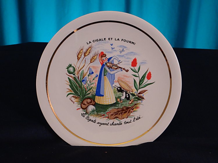 - A particularly colorful young female grasshopper plays her violin while the ant in peasant's wooden shoes carries a huge seed past her.