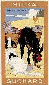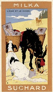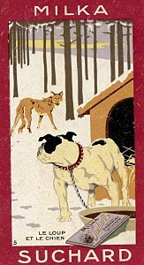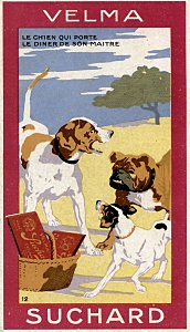 1980? Twelve numbered cards in strong portrait format (2⅜" x 4⅛") distributed among five "families" of Suchard: Chocolat, Velma, Milka, Cacao, and Noisettine. €25 from Albert Van den Bosch, Antwerp, Belgium, Feb., '12. BF from olivier9682 through Ebay for €6.50, July, '22.