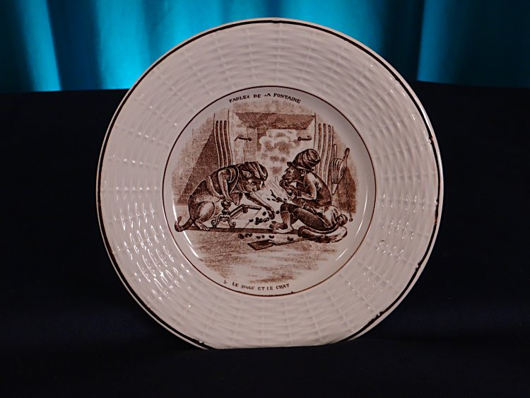 - The Cat and the Monkey, 7" white plate from Sarreguemines