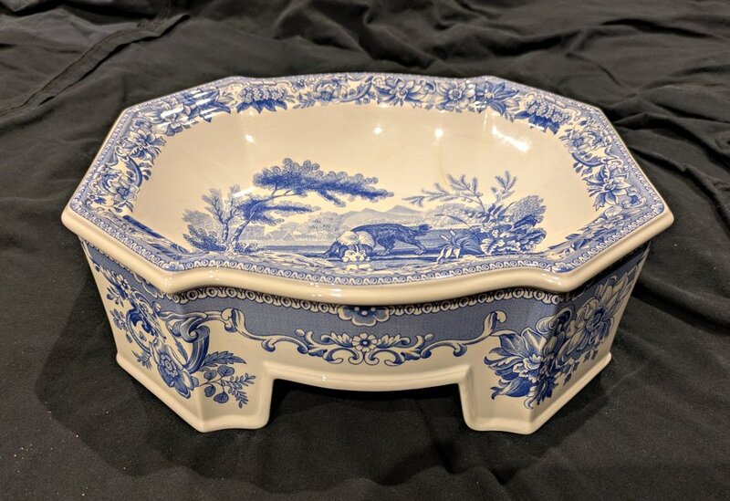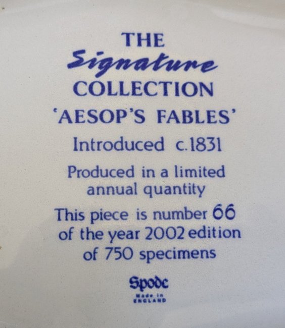2002 Limited Edition Spode Dog Bowl – Signature Collection “Aesop’s Fable.” 10.75" x 8.5" x 3.75". #66 of 750. Unknown source.