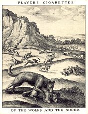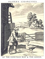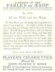 1927 Fables of Aesop. From engravings by W. Hollar, etc., MDCLXV. Series of XXV. About 3" x 2½". Player's Cigarettes. Issued by John Player & Sons, Branch of the Imperial Tobacco Company (of Great Britain and Ireland), Limited. $76 at Murray Cards International, Cecil Court, London, July, '92.