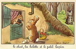 - Set for $100 from Alexandre Przopiorski de Cay, Lyon, France, June, '00. Five cards, including FG, for €5 apiece, from Brie Comte Robert at the Paris Post Card Exhibit, Jan., '05. Four cards from Elizabeth Sagar, including the new "Monkey and Cat," for £5 through eBay, May, '12. Extra of FG for €4 from Recto-Verso, Strasbourg, July, '19.