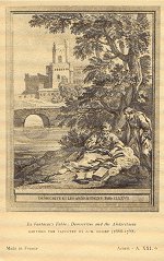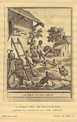 1935? Set of twelve postcard-size (5½" x 3½") cards titled "12 Cartoons for Tapestry by J.-B. Oudry (1686-1765)" by Artext Cards. The twelve are individually labeled as "Artest - A. XXI.1" through " Artest - A. XXI.12." Made in France but titled in English with the general heading "La Fontaine's Fable." $46.05 for the set in a fragile envelope from Heartsdeesire on eBay, Sept., '03.