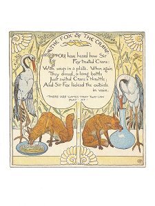 "The Fox and the Crane" note card1982? "The Fox & the Crane" by Walter Crane from Baby's Own Aesop (1887). Notecard with envelope from the Rare Book and Special Collections Division, Library of Congress. Three extras.