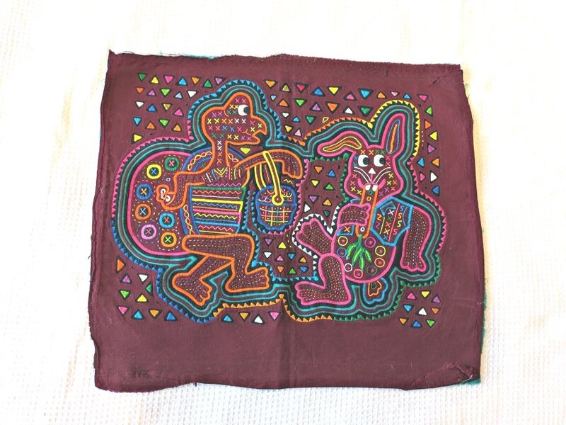 WC Mola from Panama2000? WC Mola from Panama. Dimensions. Unknown source. This lively piece of work can be hard to decipher, at least at first. Are those frogs behind and under the wolf? I find this work breathtaking!