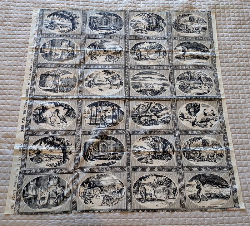 I keep finding more and more various kinds of cloth picturing fables. There are several sets and then some individual pieces of cloth.