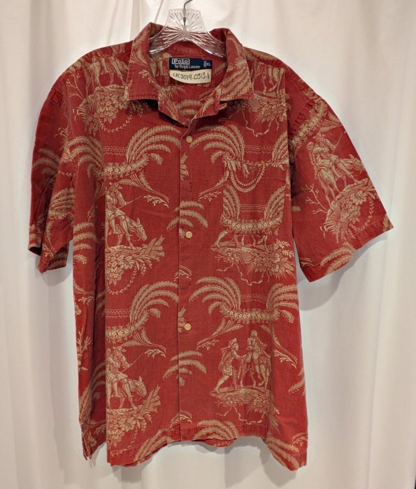 Ralph Lauren Polo Shirt2000? Ralph Lauren Polo Shirt Featuring MLS. XL. 100% cotton. Made in Indonesia. Unknown source. Here is a surprise! My mind does not easily put Aesop and Ralph Lauren into the same sentence. Secondly, the choice of this fable for a shirt is another surprise. Finally, the result is, for me at least, a surprise. This may be the most garish object in the collection! The patterns are familiar, but from where?