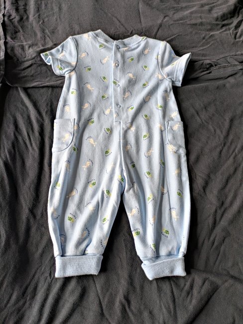 TH Onesie for Infants2001 TH Onesie for Infants. Gymboree. 0-3 months. 100% cotton. Made in Thailand. Unknown source. This cute garment features a lovely stiched representation near the neckline and repeated named rabbits and turtles in a pattern throughout.