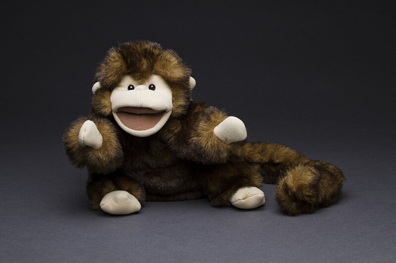 Monkey Hand Puppet1995? Monkey Hand Puppet. Furry Folk and Folktales: Folkmanis, Inc., Emeryville, CA. Unknown source. As the tag shows on this puppet in excellent condition, the puppet is meant to recall “The Monkey and the Crocodile.” This is the “I left my heart at home in a tree” story. A puppeteer’s hand can move head and both arms of this decidedly happy creature. His mouth is quite fixed in a nice smile.