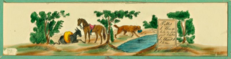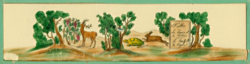 We have sets of magic lantern slides whose images, though differently colored, are the same, but they are on different widths of slides, 9.5" and 14". We present here each group and then a comparison of them.
