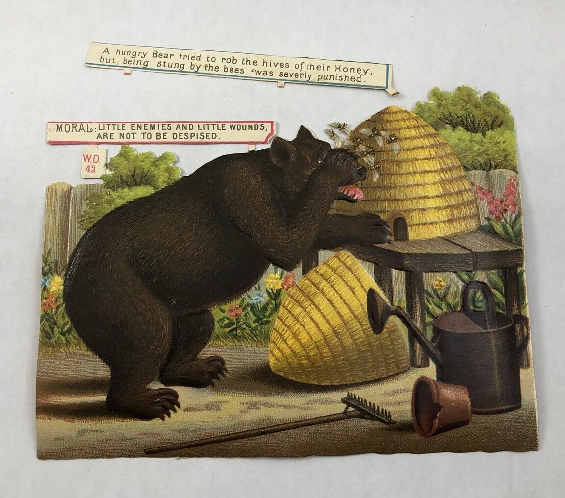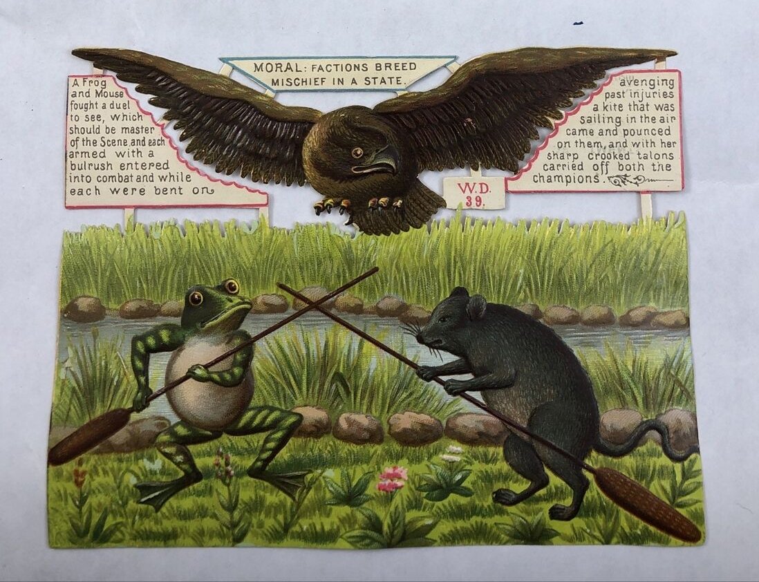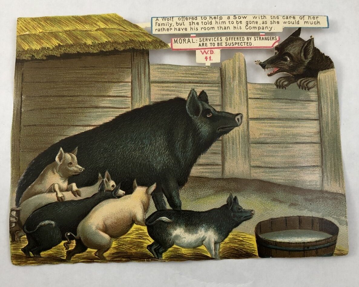 1900? Antique Victorian Die Cut Paper Art Fable Set of 12. $100 from Chickadeepick through Ebay, March, '23.