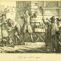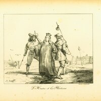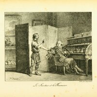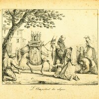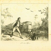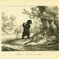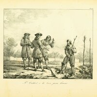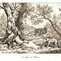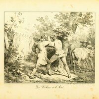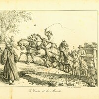 Engelmann seems to be the engraver for many of these. I have assigned him authorship for those not signed by LeComte or Vernet. These seem to be pages from a book in our collection, "Fables choisies De La Fontaine ornees de figures lithographiques" from 1818, published by Engelmann.